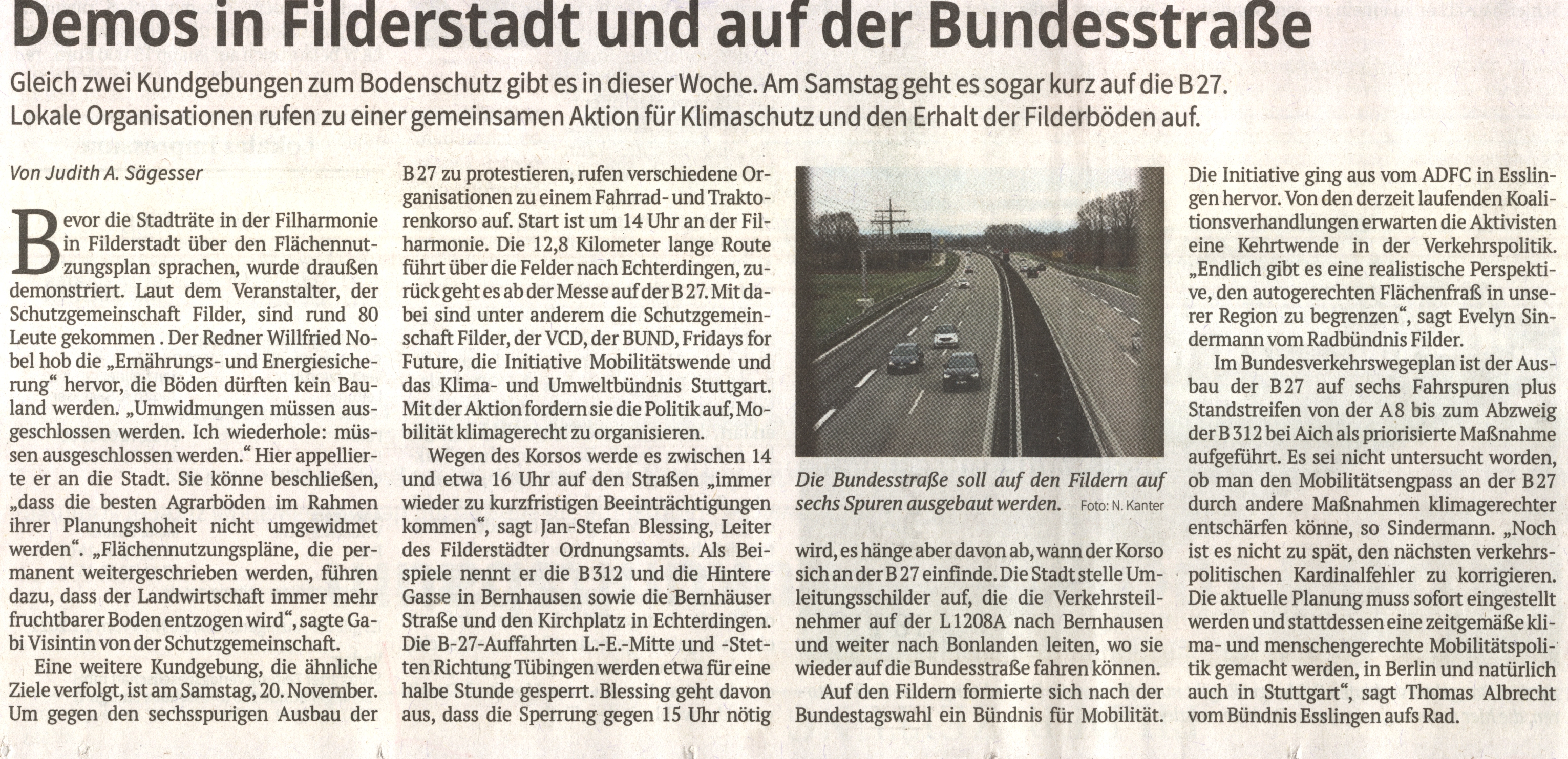 Filder-Zeitung: Demos in Filderstadt und auf der Bundesstraße